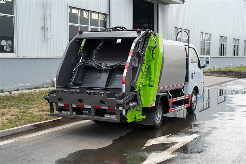 尾部翻轉板(可掛載120L和240L塑料垃圾桶),電控為CAN總線集成電路形式,手電一體,無線遙控操作!