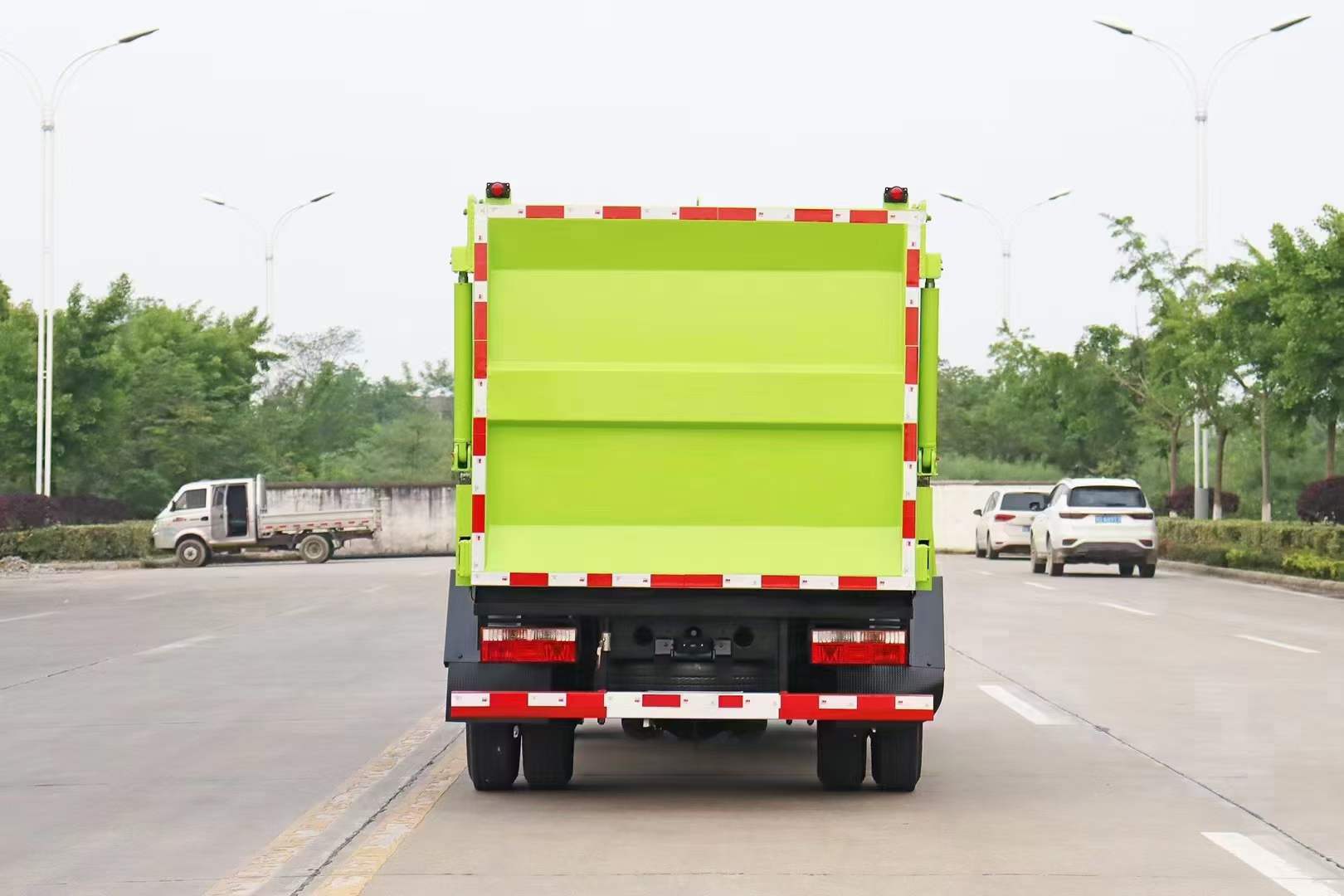 (2)壓縮比高、裝載量大:箱體容積約7立方米,裝載量相當于同噸級排非壓縮垃圾的兩倍半。